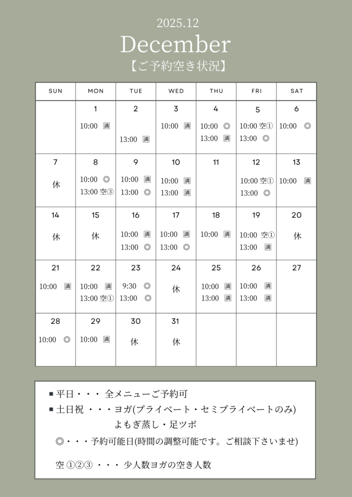 現在、中学生と高校生の2人の息子の母として子育て奮闘中です。自分に自信がなく心身不安定だった10代、20代頑張りすぎてストレスを溜め込みメンタルに不調をきたした30代の子育て私を救ってくれたのはいつもヨガでした。身体だけでなく心も楽にしてくれるヨガそんなヨガを広めたいと思いインストラクターになり自宅サロンを開業しました。今では歳を重ねるたびに“今の自分”が最高に大好きになっています。“心も身体も心地良い自分に戻る喜び”を一緒に感じていきましょう。
